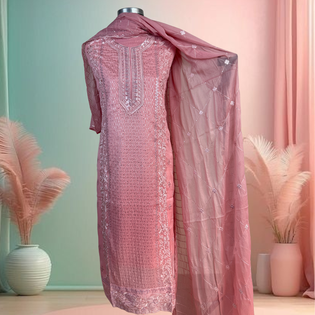Premium Rose Gold Premium Georgette 3 piece R-102